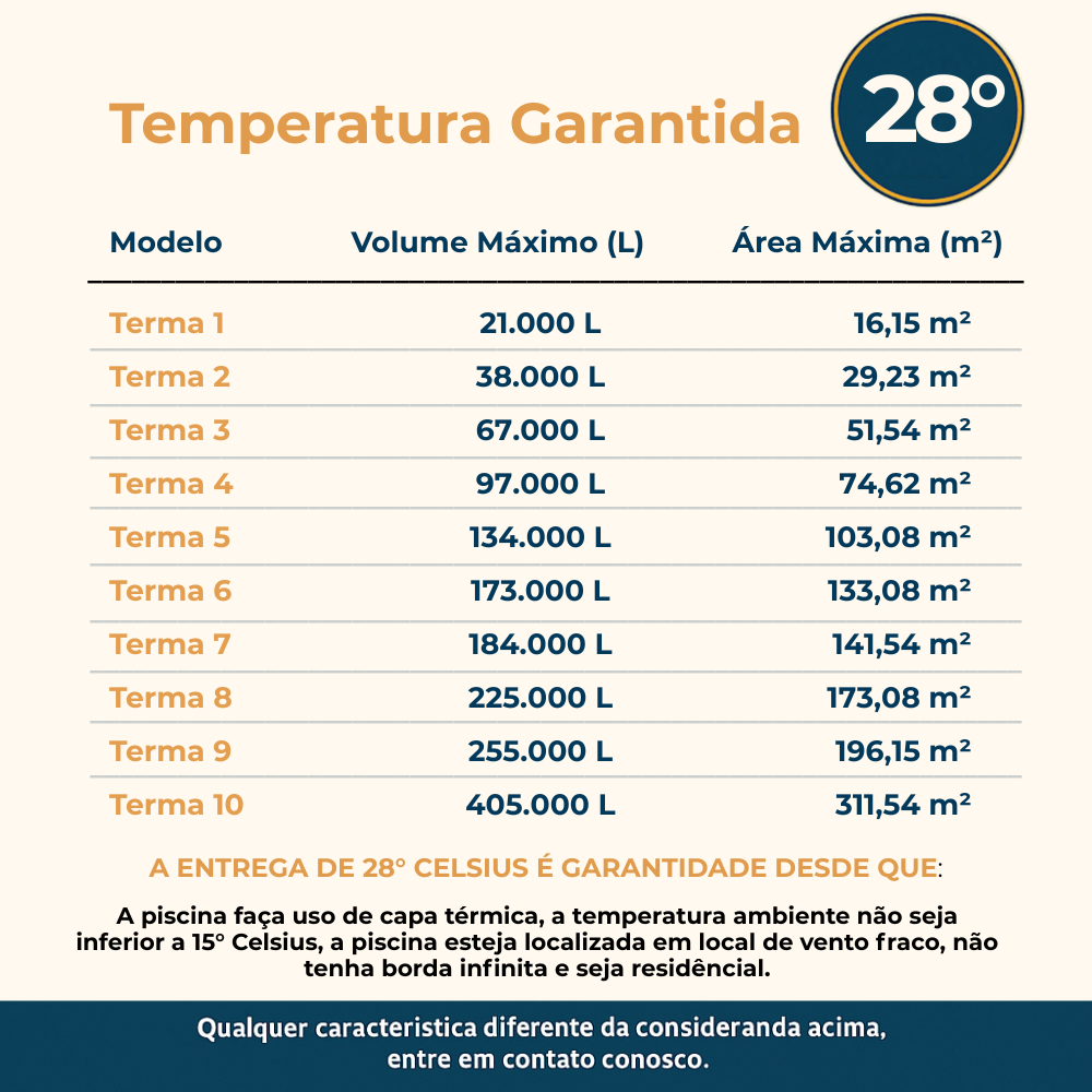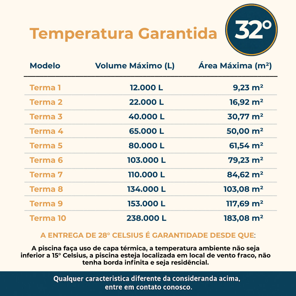 Para saber qual Bomba de calor ideal para sua piscina nos envie no campo de perguntas o dimensionamento da sua piscina para que possamos indicar o melhor equipamento para você.