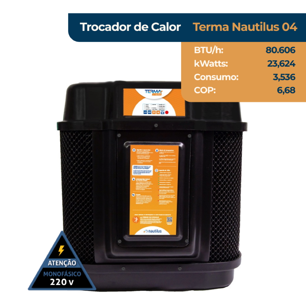 A Bomba de calor Nautilus TERMA NAUTILUS 04 é indicado para piscinas residenciais ou comerciais.
