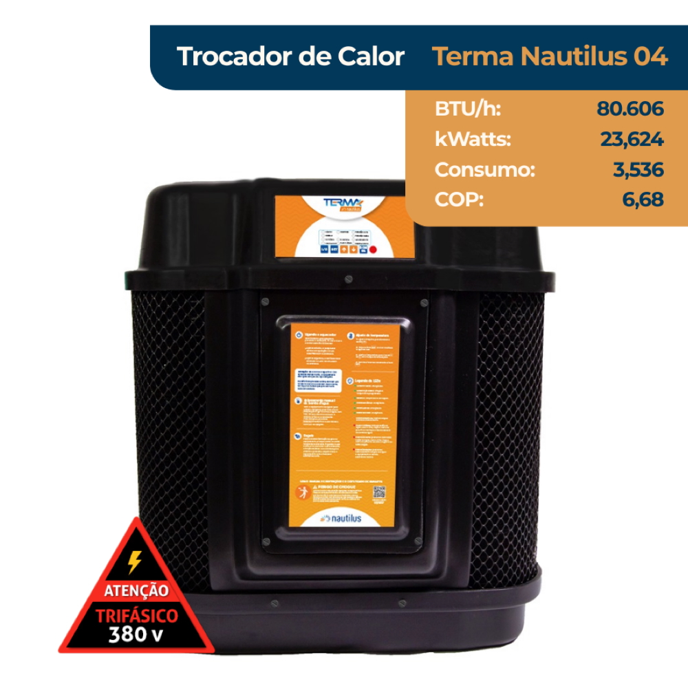 A Bomba de calor Nautilus TERMA NAUTILUS 04 é indicado para piscinas residenciais ou comerciais.