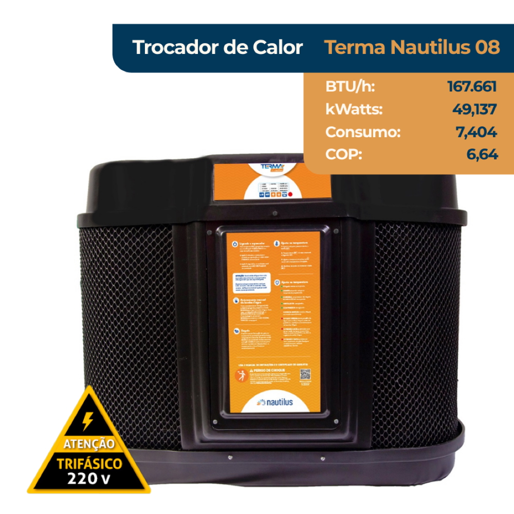 A Bomba de calor Nautilus TERMA NAUTILUS 08 é indicado para piscinas residenciais ou comerciais.