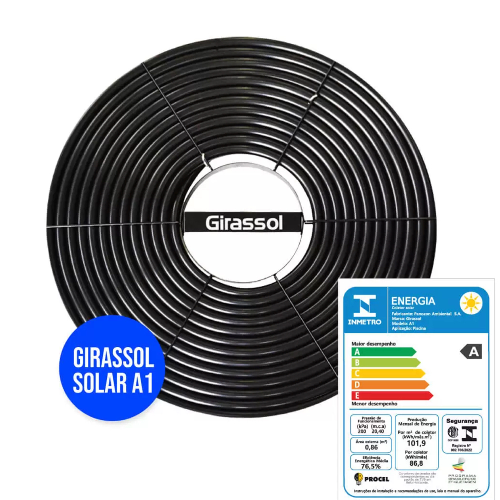 O coletor G1 da Girassol foi desenvolvido para trazer uma melhor relação custo x beneficio, com o novo polímero de alta performance (PAP) de propriedade exclusiva da Girassol, por ser desenhada para suportar maior pressão e vazão, permite aquecer a água da piscina em menor tempo e utlizando uma menor área de telhado.