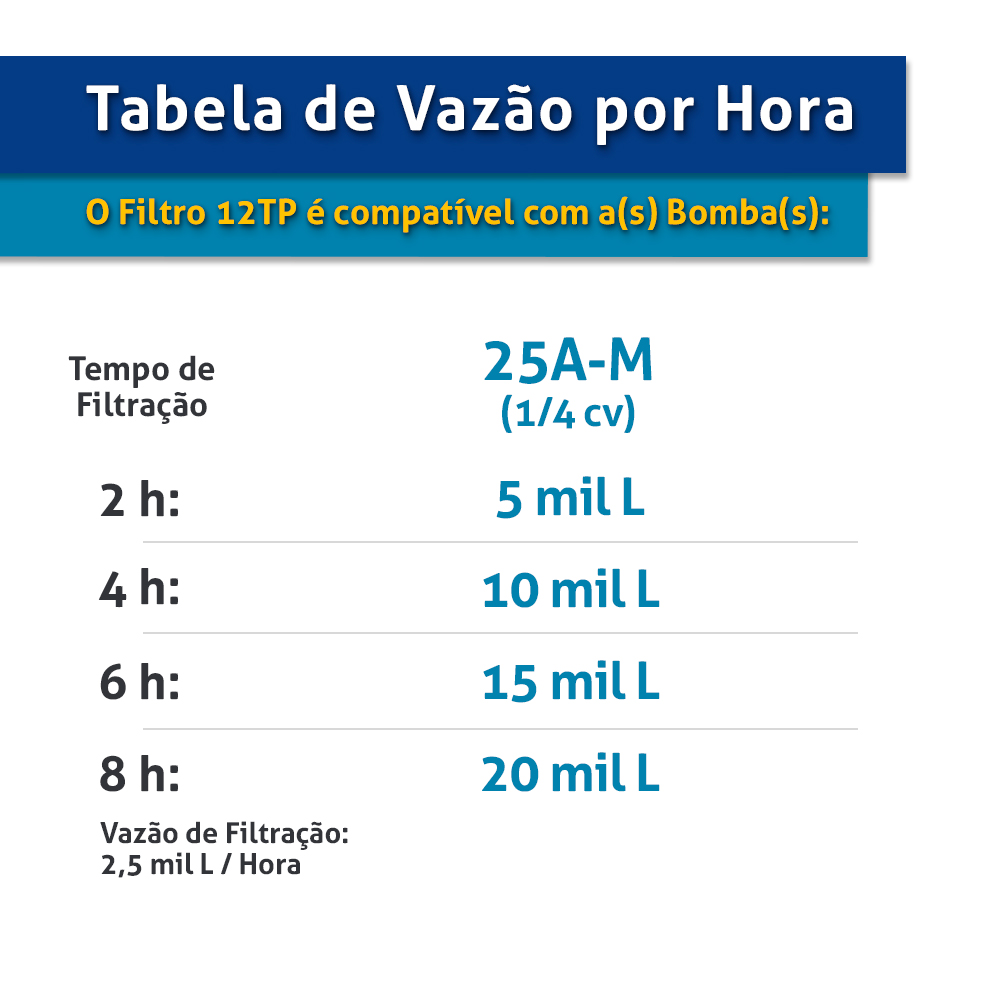 Operam com taxa de filtração de até 1200 m³/m²/dia, possuindo tanques com grande área de filtração que os tornam adequados também para piscinas altamente freqüentadas (semipúblicas e coletivas), permitindo longos períodos entre as retrolavagens. O filtro TP é constituído por um tanque em material termoplástico amarelo, com sistema interno de distribuição e drenagem, válvula seletora de seis posições, visor de retrolavagem e um ou dois manômetros.