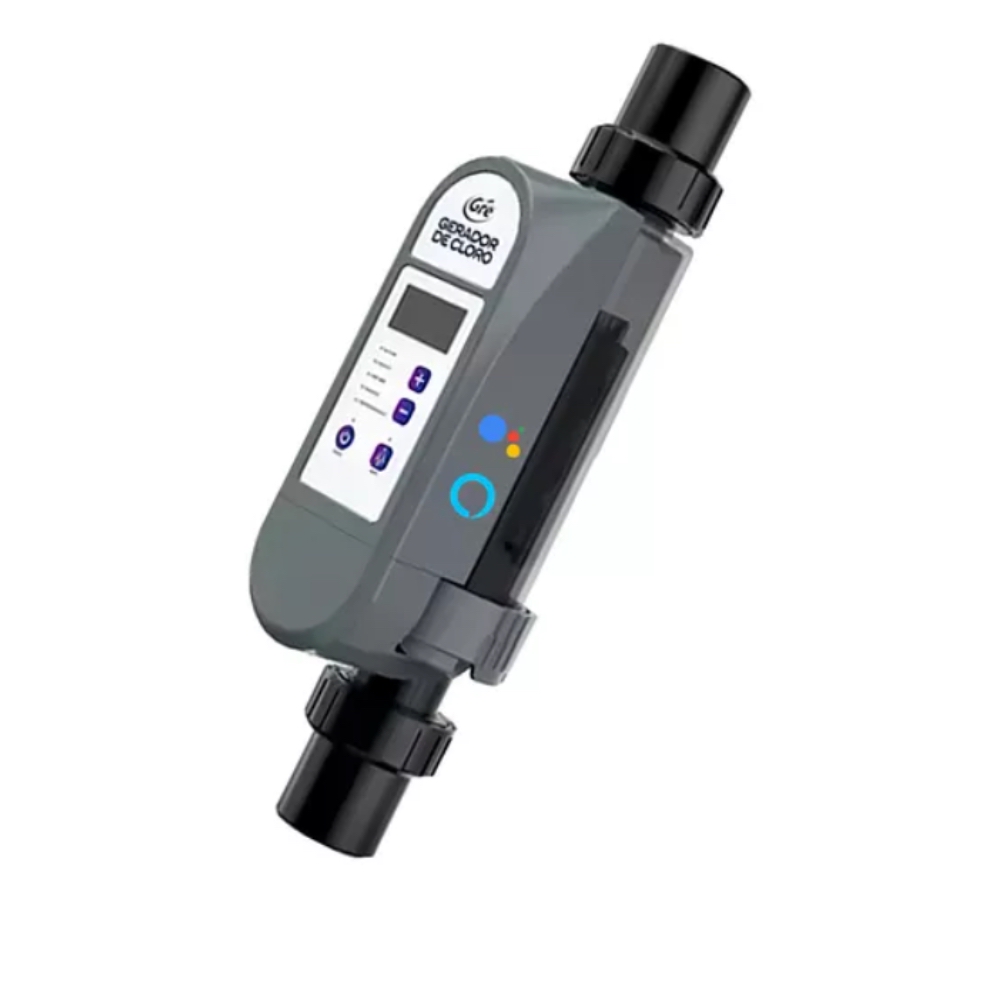 O Gerador de Cloro GRE 20 é a solução avançada para piscinas maiores, com capacidade de produção de cloro de até 20g/h. Perfeito para piscinas de até 85m³ com 11 horas diárias de uso ou até 60m³ com 8 horas diárias, assegura uma limpeza eficiente e constante. Equipado com funções automáticas como auto limpeza, reinício automático e alarmes de segurança, além de conectividade Wi-Fi que permite controle remoto por smartphone e assistentes virtuais como Alexa e Google Assistant.