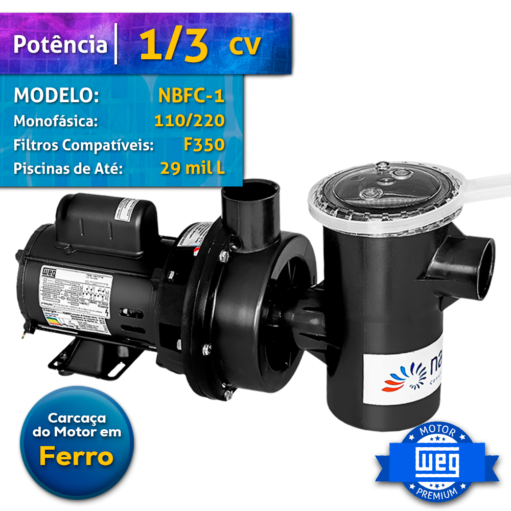 Motobomba Nautilus 1/3cv Piscina Até 29000L NBFC-1 M FERRO