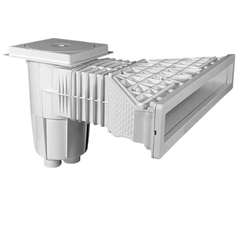Material: O corpo do skimmer é fabricado em ABS, um material durável e resistente, ideal para suportar o uso contínuo e as condições externas da piscina.